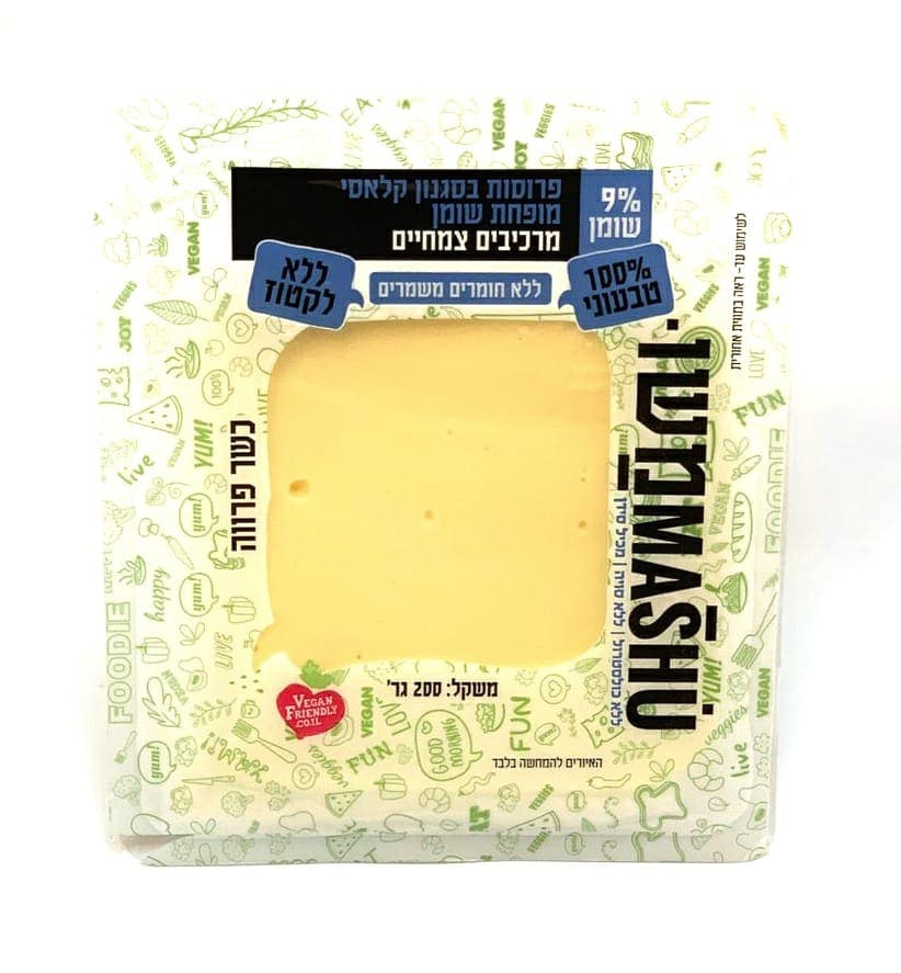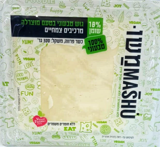 גוש טבעוני בטעם מוצרלה 18% שומן 300 גרם "משומשו"
